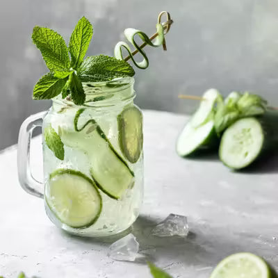 Die Fruchtigkeit von Gurke, Limette und Minze, abgestimmt mit fein spritziger Kohlensäure und 32mg Koffein pro 100ml. Der erste und leckerste Bio Energy Drink aus Früchten!